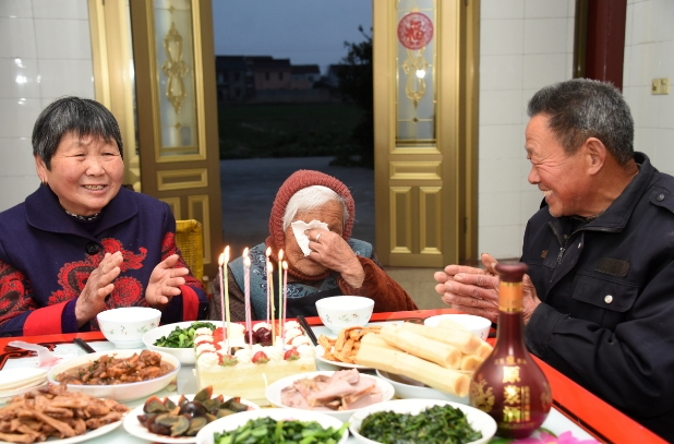 雨水節氣后,張家港出現了“倒春寒”天氣,氣溫降了不少,殷志蘭拿出一條剛做好的新棉褲,幫97歲的養母施友娣換上。擔心老人晚上睡覺冷,殷志蘭每天早早就把電熱毯打開。