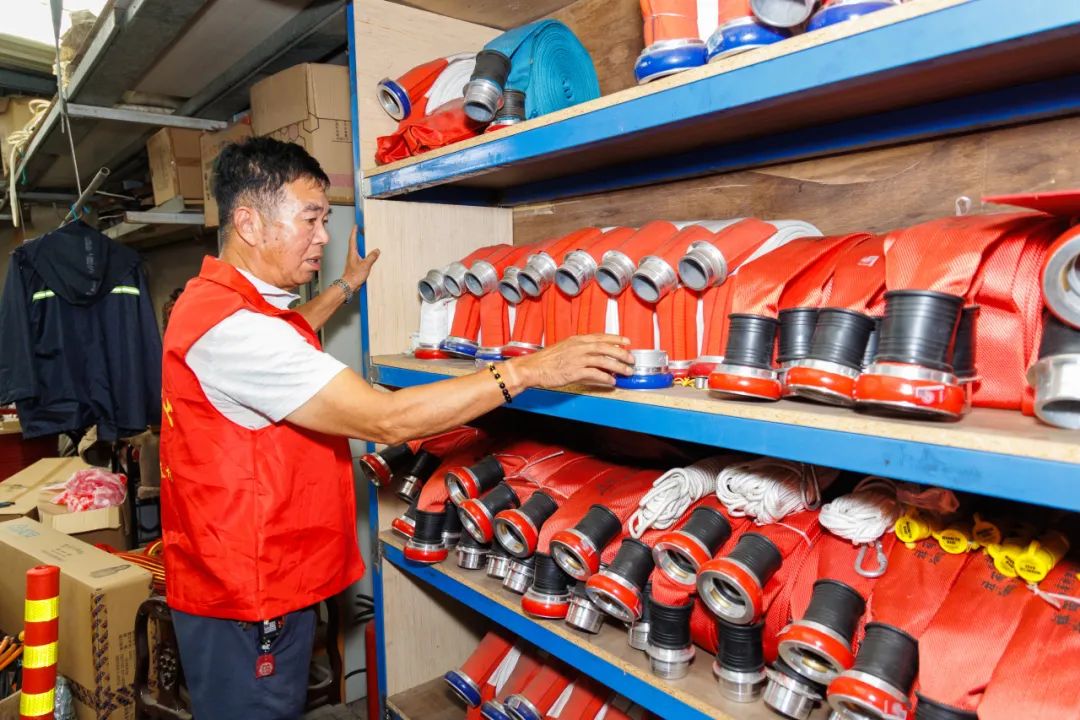 在石塘灣西石環衛所院子里,有一處10平方米大小、不起眼的鐵皮房,是“繆家軍”的“消防司令部”,里面消防車、消防服、水帶等消防設施配備齊全。為了保證“消防車”正常運轉,繆梅清每天都會檢查車輛的油量、儲水等,以及做一些常規養護,確保車輛隨時處在“臨戰”狀態。