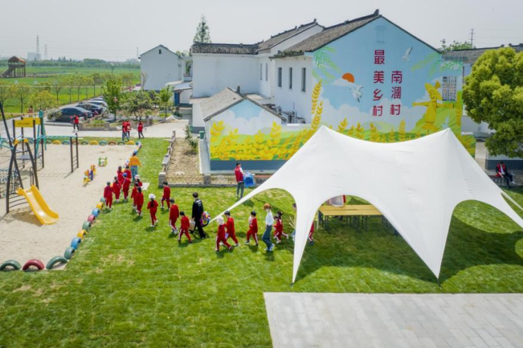 長涇鎮上,“東舜客廳”、風雨文化長廊、蒲市印象書屋等7個“涇”彩生活微空間,繪就了一幅生態宜居的美麗鄉村畫卷。村民紛紛表示,“微更新”改造后的公共空間既保留了鄉愁記憶,又增添了現代設施,特別是“涇里俏江南”燈光秀成為親子休閑娛樂的熱門打卡點。