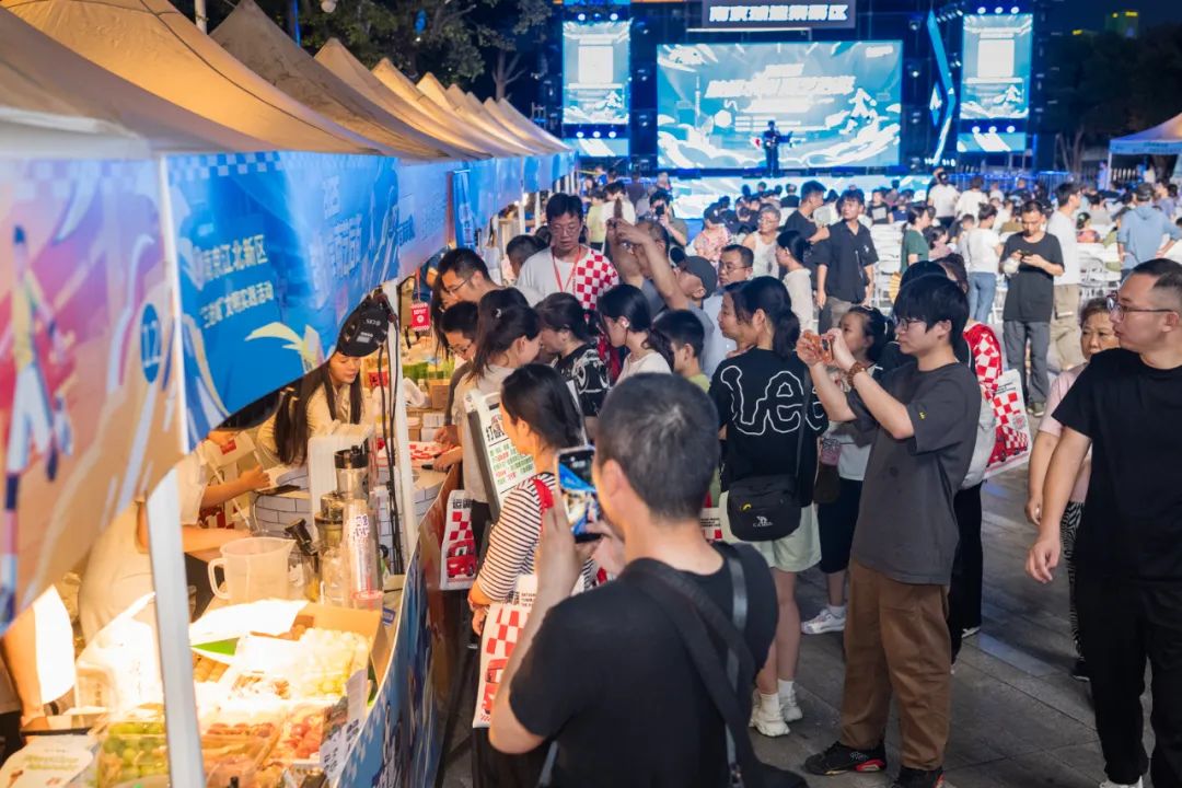 在鼓樓水岸·南藝后街,這場(chǎng)融合盛宴同樣精彩。蘇合農(nóng)產(chǎn)品集團(tuán)攜20余家精選農(nóng)產(chǎn)品展位,沃田藍(lán)莓汁、水果奶貝奶片等健康飲品與地方小食匯聚成“蘇”式風(fēng)味的河流。