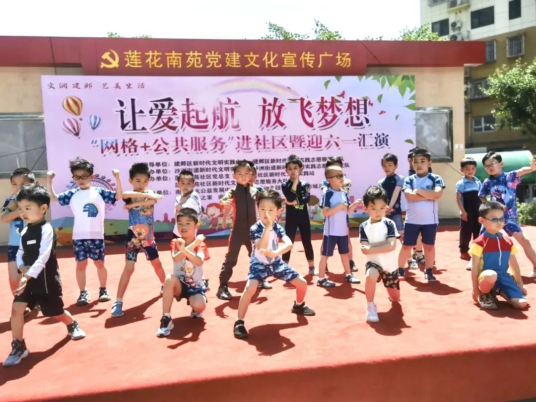 建鄴區新時代文明實踐中心在沙洲街道蓮花南苑社區廣場舉辦“讓愛起航 放飛夢想”——迎六一匯演廣場活動。