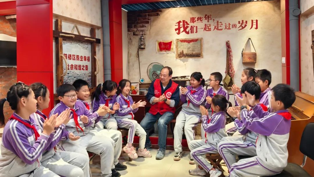 石鼓路小學梧桐娃小隊來到鼓樓區小市街道東井新村社區新時代文明實踐站參觀學習,在全國勞模朱海帶領下,小朋友們參觀了工業印記微博物館,感悟老一輩小市人篳路藍縷、開拓創新、無私奉獻、拳拳報國的精神境界。