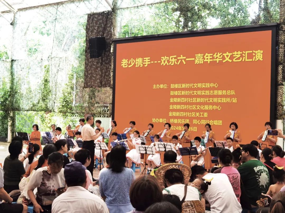 鼓樓區寶塔橋街道金陵新四村社區新時代文明實踐站攜手橋緣民樂團、同心同行合唱團在濱江中學舉辦“老少攜手——歡樂六一嘉年華”文藝演出活動,為現場觀眾帶來一場視聽盛宴。