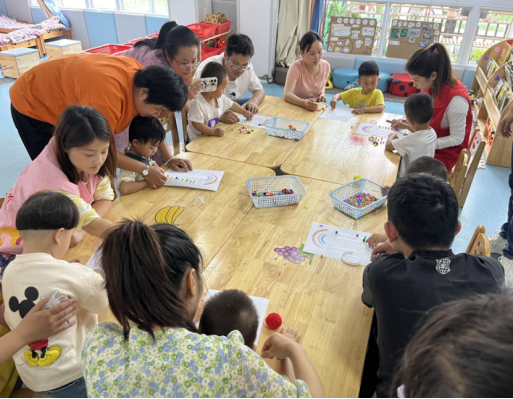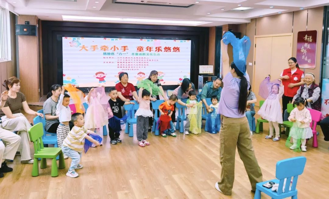 江寧區秣陵街道秦淮社區新時代文明實踐站邀請保育機構的專業育兒師,帶領轄區孩子與家長開展“大手牽小手 童年樂悠悠”親子互動體驗活動。