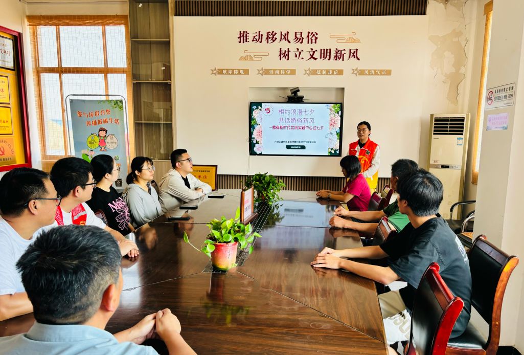 龍虎營村新時代文明實踐站舉辦“相約浪漫七夕,共話婚俗新風”移風易俗宣講會。志愿者和大家分享七夕的由來、牛郎織女的故事等,并倡導文明婚慶、傳承優良家風。
