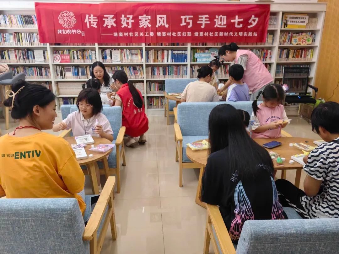 石湫街道塘竇村社區新時代文明實踐站開展“我們的節日——傳承好家風 巧手迎七夕”主題親子DIY畫框活動,邀請轄區親子家庭了解七夕由來和習俗,制作愛的相框,在動手實踐中學習和傳承良好的家風家訓。