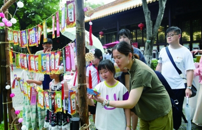 游客還可以在六朝博物館“中秋市集”,制作漂漆扇、祈福香囊、香薰禮盒。9歲的唐悅高興地展示著自己作品說:“我覺得將親手做的香囊送給媽媽爸爸,表達了我在中秋節對他們真摯的祝福。”