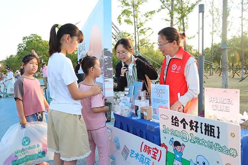 “豚寶的藝術商店”文創展區內,一系列以豚寶為原型的文創產品嶄新亮相,成為活動的“吸睛擔當”。從實用的咖啡杯、冰箱貼筆記本,到可愛的豚寶徽章,每一件產品都融入了長江生態元素與低碳設計理念。購買文創產品是在收藏紀念的同時,也將“守護江豚、愛護長江”的理念帶回生活。現場還設置了“給個好‘瓶’”環保行動、長江保護主題知識問答等,讓居民們可以在學習中了解知識,用實際行動踐行“減碳同行”的環保承諾。