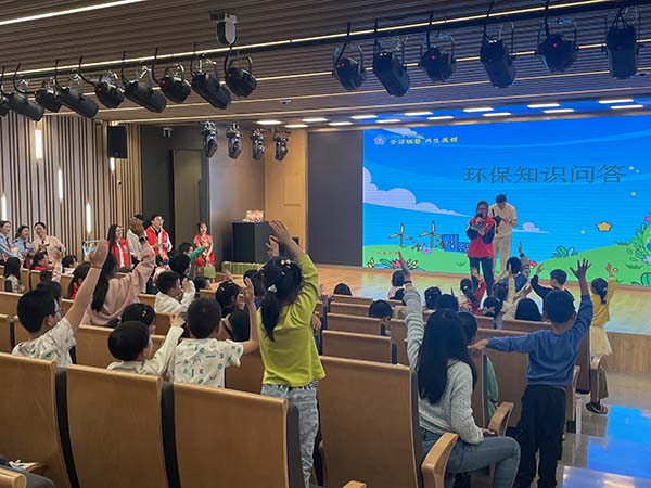 活動現場,志愿者老師娓娓道來,聲情并茂地向親子家庭介紹世界地球日的背景和意義,闡述環境保護的重要性。為進一步鞏固青少年環保知識,主持人還圍繞垃圾分類、節能家用電器使用等多方面內容與孩子們進行有獎問答,互動氛圍熱烈。