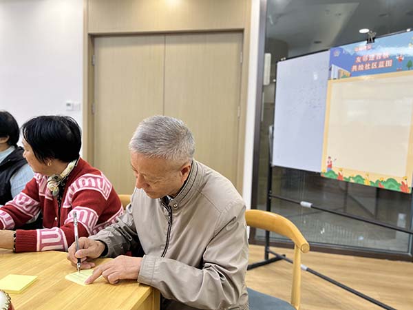 秣陵街道牛首社區(qū)新時代文明實踐站以“當我們‘老’在一起”重陽友鄰共創(chuàng)活動為載體,設(shè)立“友鄰建言板”互動環(huán)節(jié),引導(dǎo)長者圍繞便民服務(wù)、文化活動和設(shè)施適老化等議題積極建言。所收集的寶貴意見被納入社區(qū)治理參考體系,充分體現(xiàn)了對長者經(jīng)驗與智慧的尊重。活動在賦予老年群體在公共事務(wù)中話語權(quán)的同時,更有效激發(fā)了居民參與社區(qū)治理的積極性,推動共建共治共享落地生根。
