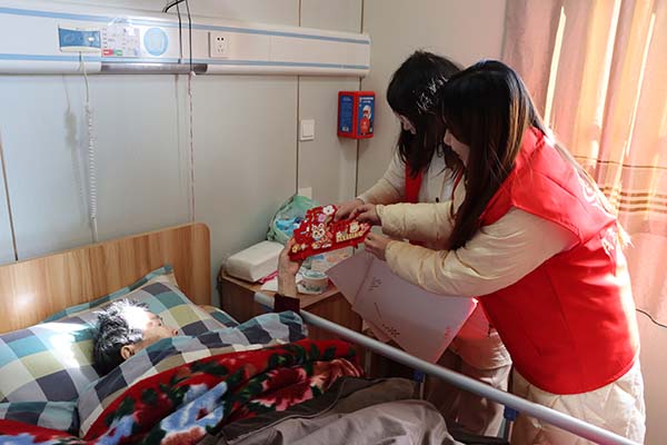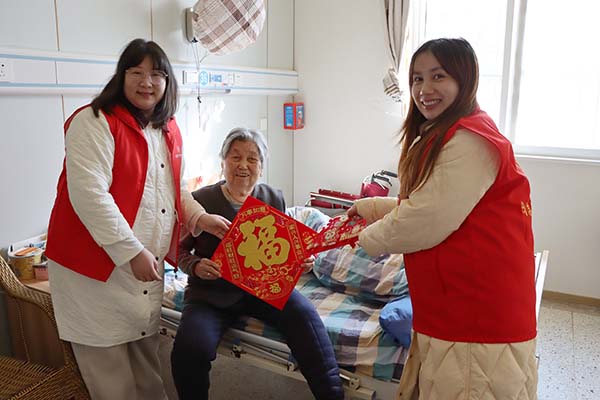 活動最后,志愿者給長者們送上福字和新春擺件,叮囑長者要注意防寒保暖、保重身體,并提前送上新春的誠摯問候。紅紙金字的福貼與精巧喜慶的擺件,為長者的房間增添了濃濃年味,更凝聚著社會真摯的關愛與祝福。