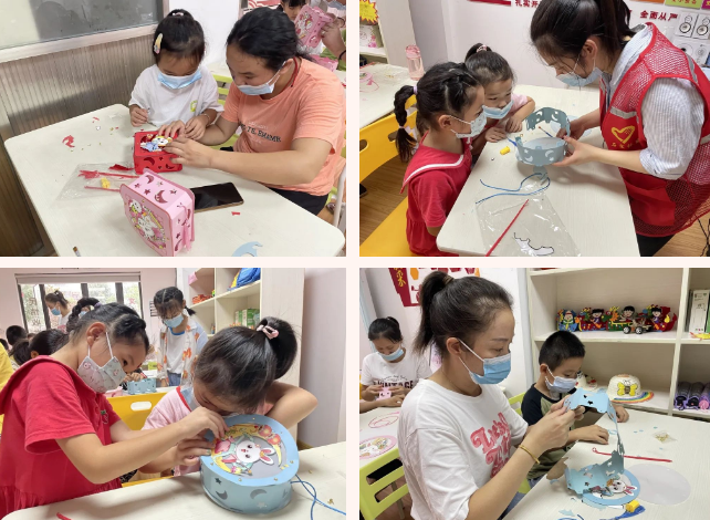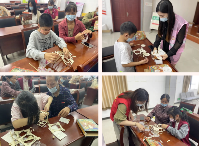 隨后,志愿者分發(fā)了制作燈籠的手工材料,面對(duì)一應(yīng)俱全的材料,孩子們興致勃勃地動(dòng)起手開(kāi)始制作。孩子們相互探討交流,一步一步地認(rèn)真做著,通過(guò)拼接、裝訂等步驟,最后再裝上電子燈,一盞盞精致的燈籠在能工巧匠的手中點(diǎn)亮,五顏六色的燈籠里寄托了大家的美好愿望。