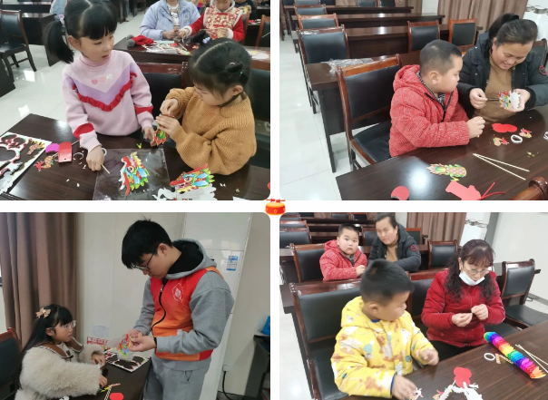 活動開始,志愿者首先結合視頻《舞龍燈》,從龍燈的起源、來歷、民間傳說三方面進行了詳細解讀。緊接著,志愿者手持龍燈模型現場展示了“龍燈”表演,小小的龍燈模型在志愿者靈活地舞動下,時而騰空飛舞,時而附身而下,這樣高低錯落,蜿蜒盤旋的精湛表演,讓孩子們連連拍手叫好,短短的幾分鐘的表演,孩子們便對舞龍燈產生了濃厚的興趣。隨后,在手工制作環節中,志愿者一邊介紹龍燈的制作方法、步驟及注意事項,一邊上手演示,大家按照志愿者的講解,將備好的燈籠材料進行折疊、粘貼、拼接、組裝。最后在志愿者的耐心指導下,經過半小時的搭建、固定、組裝,一個個漂亮精巧的龍燈展現在大家眼前,看到自己的作品,大家臉上都洋溢著滿足和幸福,紛紛舉起龍燈合照留念。