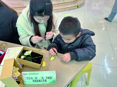 圖為市民體驗絨花制作。南京日報/紫金山新聞記者 朱旖旎 攝