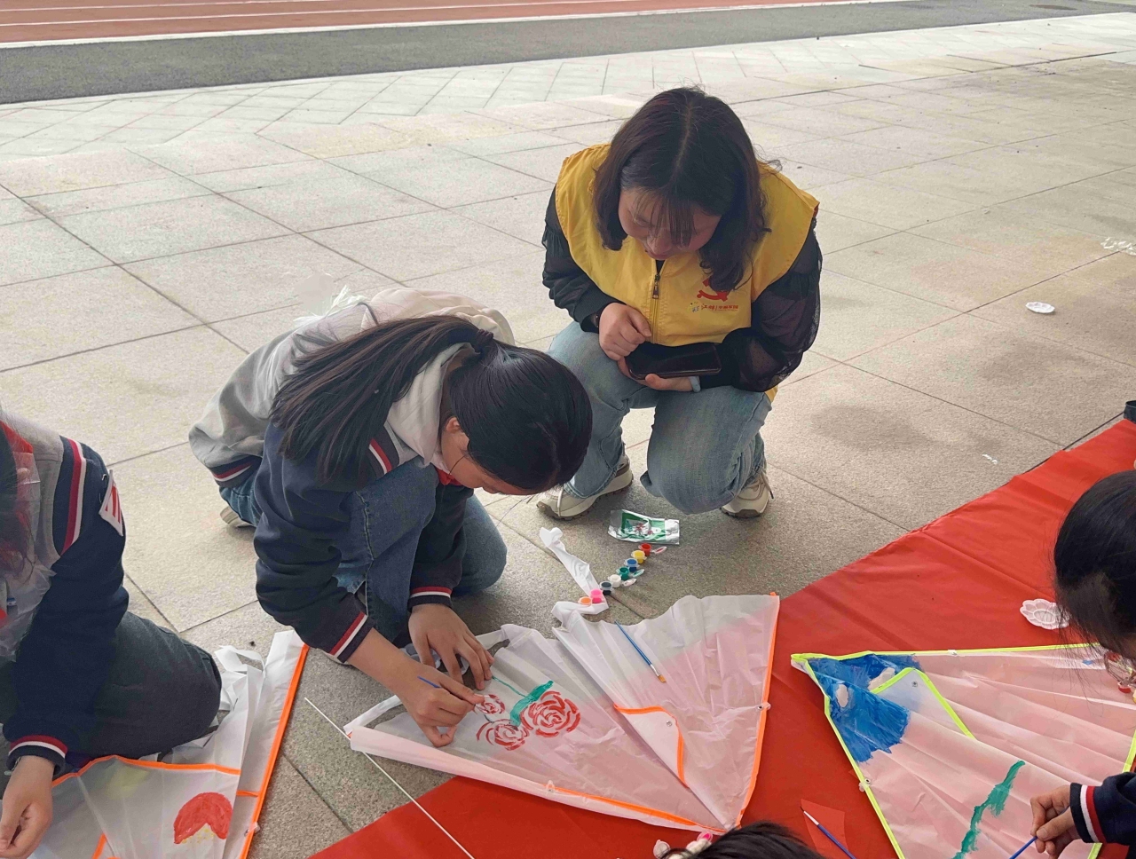 活動開始,新時代文明實踐站志愿者耐心細致地為同學們講解了手繪風箏的流程及注意事項,放發完材料后,孩子們便投入了即興創作。“小畫家”們個個熱情高漲,拿起白色風箏、顏料和畫筆,插上想象的翅膀,用畫筆在顏料盒里輕輕地蘸取五彩繽紛的顏料,在風箏上勾勒出自己的專屬圖案。最終,一幅幅栩栩如生的風箏在同學們的巧手下活靈活現。隨后,學生們紛紛將精心制作的風箏放飛在校園的上空,時而隨風奔跑,時而立定抻線,一時間,五彩繽紛的風箏漫天飛舞,在天空中形成了一道美麗的風景線,十分壯觀,孩子們歡呼雀躍,興奮不已。
