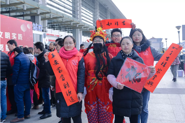 “請問在哪里取票?”“請問候車室往哪邊走?”“請問附近有衛生間嗎?”旅客來來往往,他們見到志愿者格外親切,有問題就找志愿者,志愿者耐心解答。載著對父母的掛念、對子女的思念和對朋友的懷念,每個返鄉旅客都是大包小包,把行旅箱塞得滿滿的。在火車站內外分布著熱情的志愿者,幫助旅客托舉這份沉甸甸的“幸福”。