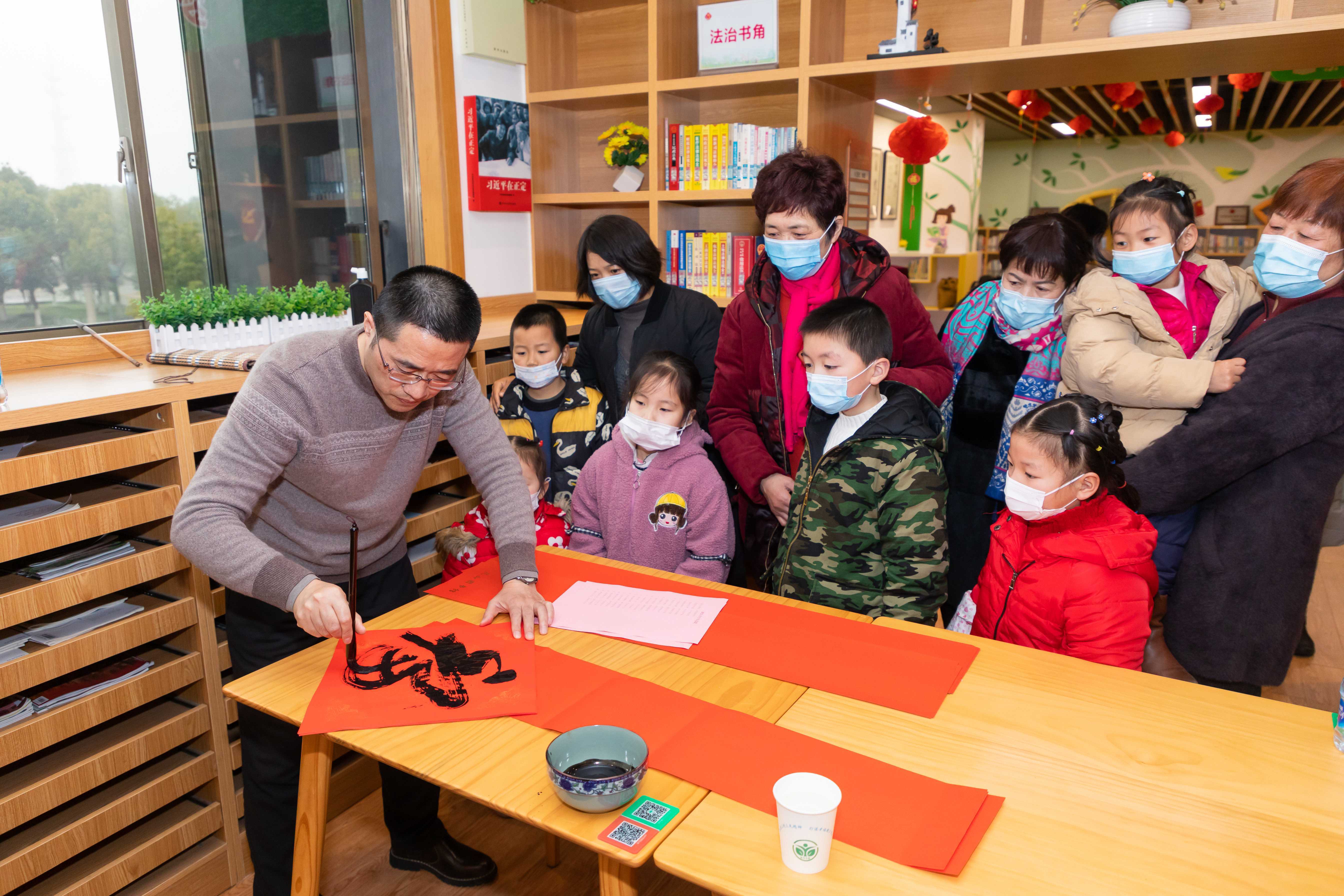 來(lái)到周市鎮(zhèn)市北村新時(shí)代文明實(shí)踐站,這里同樣熱鬧非凡,昆侖堂美術(shù)館的藝術(shù)家們鋪開紅紙、揮毫潑墨、筆走龍蛇,一副副載滿新春祝福,灑滿平安吉祥的春聯(lián)如行云流水般寫就,村民們紛紛排起隊(duì)求“福”氣。幾米外,十余對(duì)親子家庭圍坐在一起認(rèn)真聆聽由周市圖書館館員講授的繪本課。