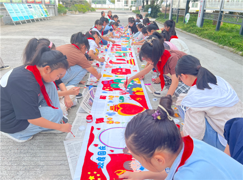 吳江區七都鎮新時代文明實踐所組織開展了“百米長卷迎國慶”活動,同學們用手中的畫筆進行全心沉浸 “創作”,中國的萬里長城、天安門、古建筑等都繪制在長卷畫上,凸顯著對祖國母親濃濃的愛意與深深的祝福。