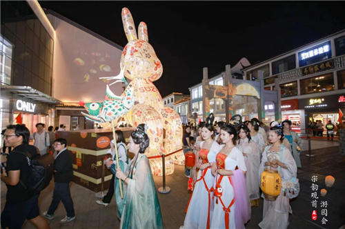 姑蘇區在觀前街、山塘街等商圈舉辦了“姑蘇月 云詩會”活動、“古風北局”園游會、“玄妙月圓時 雅韻迎仙客”演出等活動,游客們可以在觀東牌坊看到現場制作展示的“福氣兔”和“福氣墻”,可以逛文創市集,并參與到詩詞燈謎、投壺、送花燈、送月餅等環節中來,充分感受雙節氛圍。