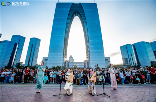 蘇州工業園區金雞湖景區開展了2023“邂逅young蘇州”金雞湖文藝快閃活動,傳遞群眾對幸福生活的無限熱愛。此外,各類精彩的文藝演出也在園區各地輪番上演:情感飽滿的愛國歌曲、優美歡樂的舞蹈演出、真摯感人的經典戲曲……帶動居民共情共舞,共慶雙節。