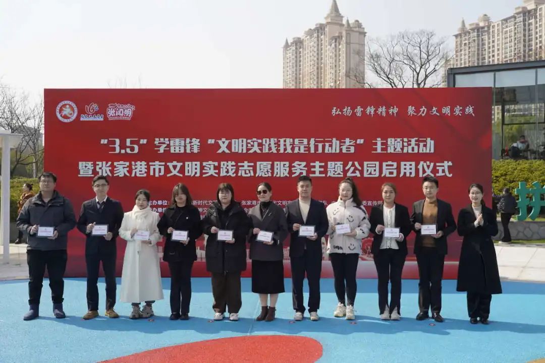 3月2日下午,張家港市新時代文明實踐中心、市新時代文明實踐志愿服務總隊、市委宣傳部共同舉辦“3.5”學雷鋒“文明實踐我是行動者”暨張家港市文明實踐志愿服務主題公園啟用儀式。全市各文明實踐分中心、各行業部門分管領導、各區鎮(街道)宣傳委員、優秀志愿服務典型代表、愛心商戶聯盟代表出席了活動文明實踐在港城。