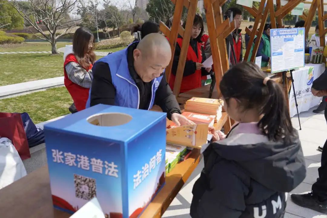 集中服務區展示了2023年度張家港市文明實踐志愿服務優秀典型事跡,開設了文明“365”文明實踐集市和“張聞明”小志愿者體驗區,向市民群眾提供理論宣講、法律咨詢、愛心義賣、志愿文化體驗等服務。