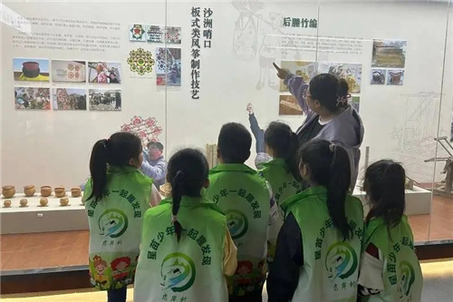 張家港市冶金園(錦豐鎮)店岸村的青少年們走進沙上文化印象館,一張張照片、一個個展品、獨具特色的非遺項目和沙上美食,讓青少年們更加了解沙上人的生產生活習慣和風土人情,加深對本土文化的認知和認同。