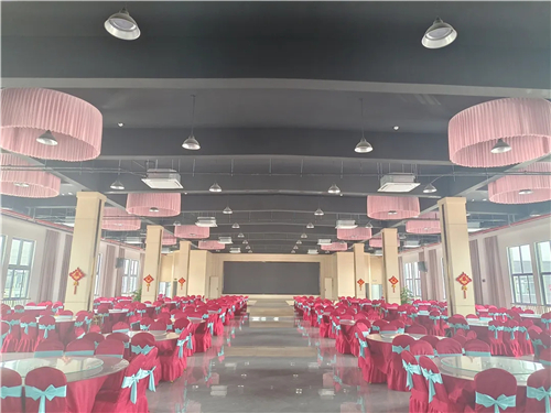 雖然只是一個禮堂,卻五臟俱全,大廳可同時容納50桌約500個人就餐,后廚功能布局專業合理,還附帶了音控室、化妝室、休息室等。
