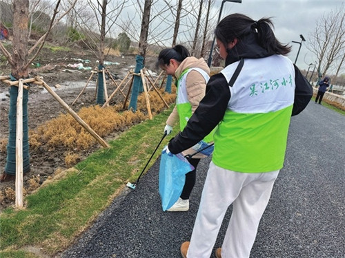 3月4日上午,吳江汾湖黿蕩沿岸,一支志愿服務隊沿河畔撿垃圾、擦欄桿,擦干凈了沿河風貌,更擦亮了這支志愿服務隊“河小青”的品牌。