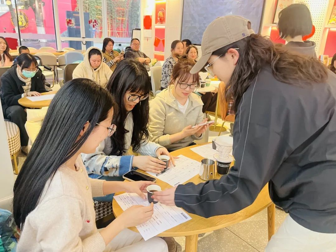 隨后,咖啡師以理論講解與實(shí)操演示為鑰,系統(tǒng)解鎖咖啡豆產(chǎn)地特性、研磨度與水溫配比、注水手法對(duì)風(fēng)味影響等手沖相關(guān)知識(shí)。在其悉心引導(dǎo)下,參與者興致勃勃地投身于咖啡豆挑選、手沖實(shí)驗(yàn)、手沖評(píng)測(cè)等流程,趣味盈然。