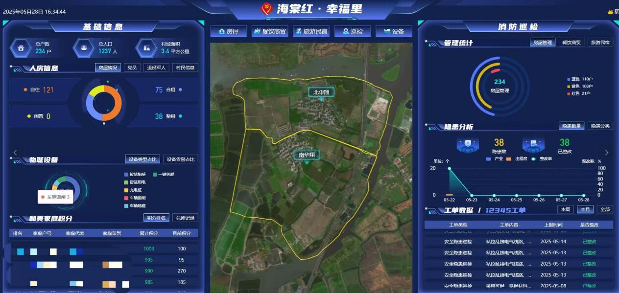 推進鄉村振興,積極探索“法治、德治、自治、智治”深度融合的現代化治理模式,精心打造“1+4”智慧化鄉村新樣板。依托“海棠紅·幸福里”基層治理平臺,高效集成人房信息、物聯設備、和美家庭積分、消防巡檢四大功能模塊,讓數據多跑路、群眾少跑腿,顯著提升鄉村治理效能,為鄉村發展注入強勁的數字化動能。