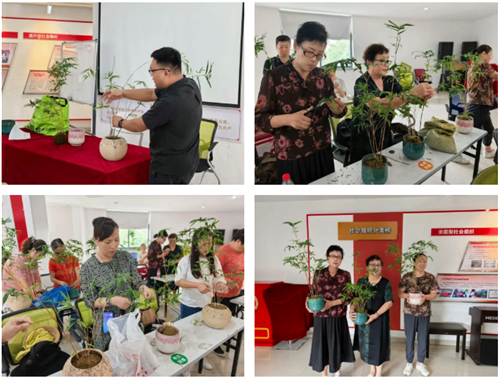 在互動環節,大家熱情高漲,踴躍參與。圍繞盆景的造型技巧、日常養護等問題,老人們與老師進行了深入交流,現場氣氛溫馨而融洽。親手培土、植栽、造型……在實踐過程中,大家不僅加深了對盆景藝術的理解,更在一土一木的營造中,體會到傳統技藝的精妙與匠心。