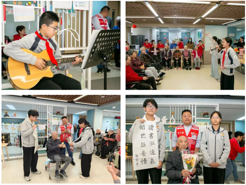 白洋灣街道領秀金品社區新時代文明實踐站聯合葉圣陶中學與共建單位申浪科技有限公司,走進悅鄰護理院開展慰問表演活動。