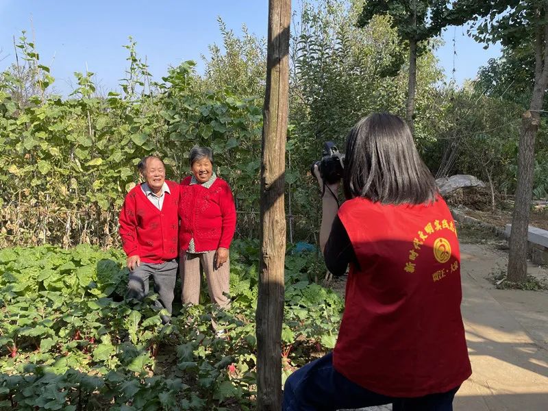 76歲的朱連恩和74歲的王素珍是泉東村的一戶老夫妻,志愿者上門拍照時,朱爺爺還在自家地里干著農活,聽到志愿者來后,朱爺爺趕忙跑了出來,換上鮮艷的紅色上衣,和王奶奶手挽手站到自家菜地里。鏡頭下,老人們微微顫抖的手緊緊相牽,心里樂開了花。