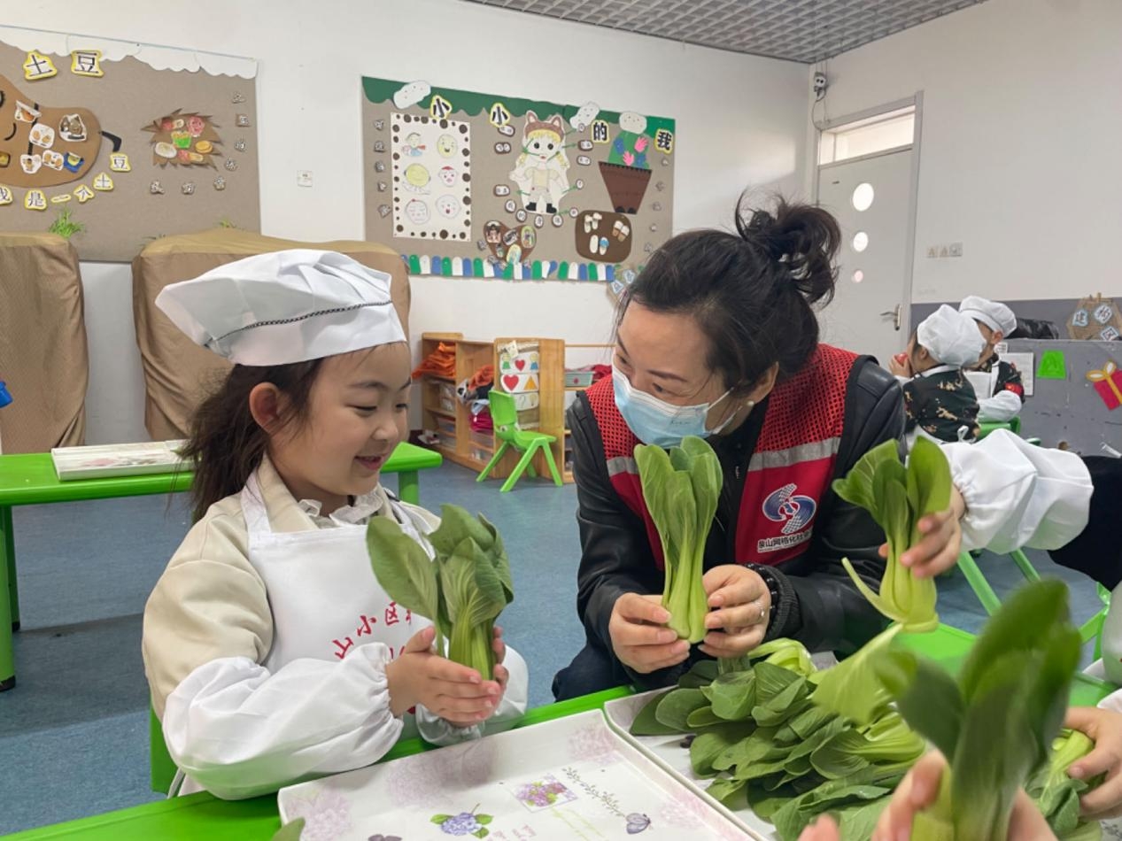 在老師和社區工作人員的幫助下,孩子們圍上小圍裙,擼起小袖子,化身勞動小達人,他們干勁十足,仔細觀察,大膽動手,互相幫助,在手眼配合和同伴互助下,蔬菜很快便被處理好了?;顒咏Y束后,小朋友們紛紛表示回到家也要幫助家人擇菜、分擔家務,成為爸爸媽媽的得力小幫手。