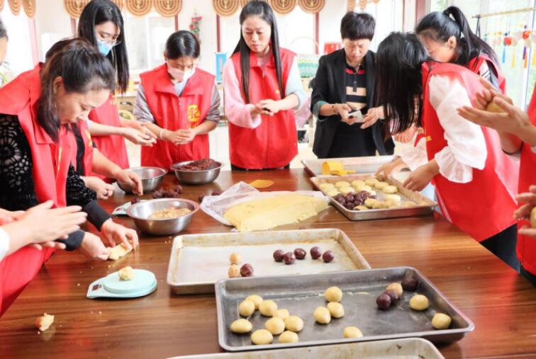志愿者們備齊了面粉、餡料、模具等材料,在糕點師傅的專業指導下,有序地投入到月餅制作過程中。揉面、包裹餡料、使用模具成型,每個步驟都執行得井然有序,活動現場充滿濃郁的節日氛圍,老人們目睹著溫馨的場景,一張張臉上洋溢著慈祥的笑容。