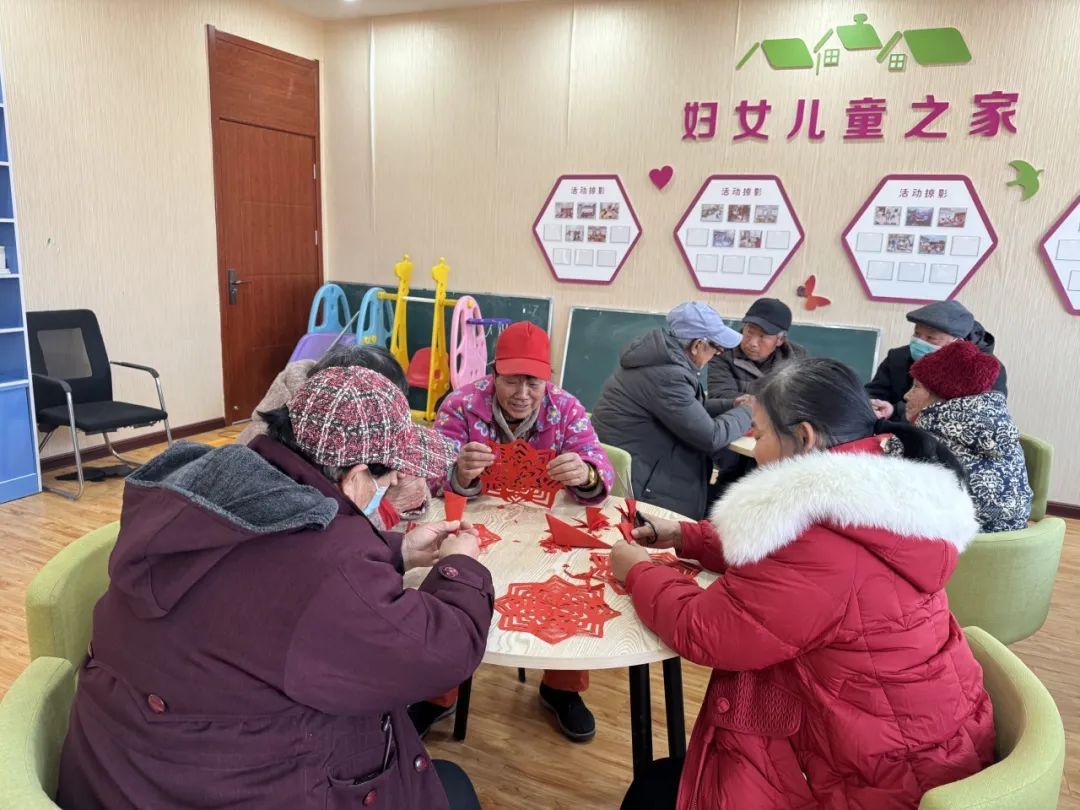 邀請(qǐng)社區(qū)居民在婦女兒童活動(dòng)室體驗(yàn)傳統(tǒng)文化的魅力。志愿者向大家講述剪紙藝術(shù)的歷史由來,展示精美新年窗花圖案。
