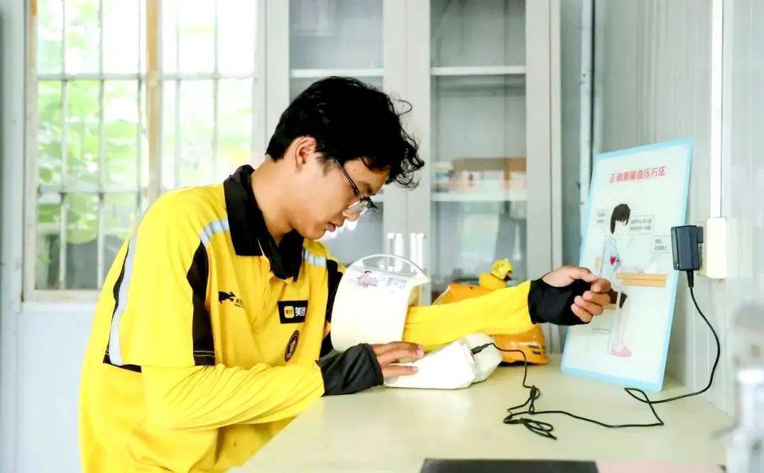 “又累又渴的時候,能在這兒喝口水、歇會兒,還能量量血壓,太方便了!”工作日下午,外賣小哥余海潮走進蘇北農貿市場北側的鼓樓“新”驛,在沙發上歇息片刻后,又熟練地使用站點的血壓儀測量血壓。