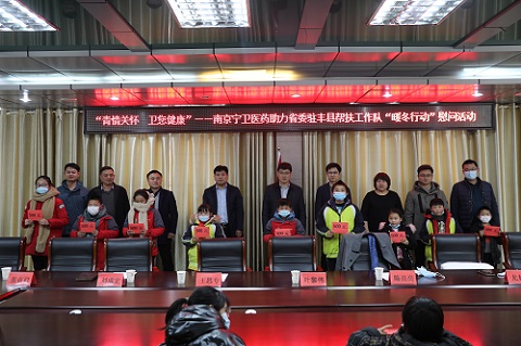 1月28日,“青情關懷 衛您健康”——南京寧衛醫藥有限公司助力省委駐豐縣幫扶工作隊在豐縣首羨鎮開展“暖冬行動”慰問活動。縣委副書記葉黎偉、省委駐豐幫扶工作隊隊員、南京寧衛醫藥有限公司董事長陳亮亮一行在豐縣首羨鎮黨委副書記、鎮長王思專,人大主席劉成宏等鎮領導陪同下對該鎮95名困難群眾、學生進行慰問。