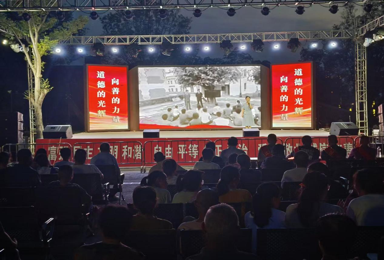 豫劇唱段《雙上山》、琴書《豐十條》、現(xiàn)代戲《懶龍伸腰》等具有地方特色的節(jié)目紛紛亮相,讓觀眾們大飽眼福。歌曲《鳳城之歌》唱出了徐州豐縣人民對家鄉(xiāng)的熱愛與贊美;紅色故事《鋼鐵媽媽侯五嫂》生動再現(xiàn)了革命先輩的英勇事跡,演講人時亞星說:“站在臺上,講述這些崢嶸歲月里的故事,我覺得是一次既震撼又深刻的心靈洗禮,在以后,我們應(yīng)該創(chuàng)作更多的紅色故事,將這些紅色故事帶給民眾,讓我們一起來銘記紅色歷史。”
