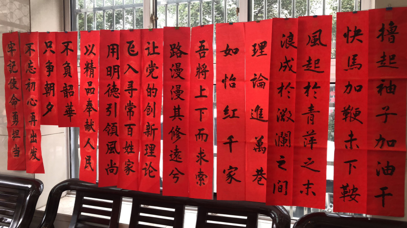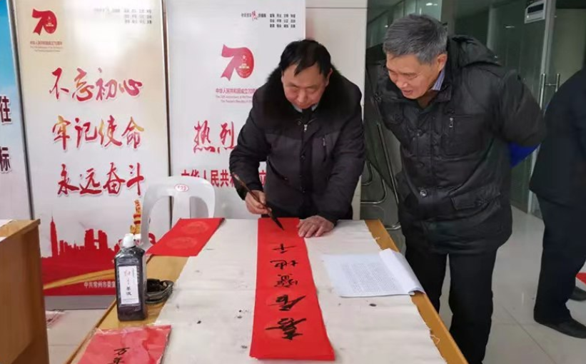 社區黨員在寫“理論金句”春聯
