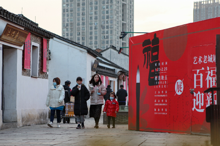 近日,青果巷歷史文化街區啟動了“古巷新歲 福至嘉年”藝術老城廂百福迎新展活動。一幅幅大紅底色、蘊著墨香的“好福氣”,與江南古巷的粉墻黛瓦互相交融,吸引許多市民及游客前來拍照打卡。此外,天寧街道還結合老城廂的特色,打造了包括紅梅公園、天寧寺、青果巷、惲代英紀念館在內的多條旅游路線,供留常過年人員打卡體驗。