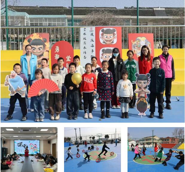 在一場生動的哪吒故事閱讀分享會后,孩子們走上籃球場,手持推桿馳騁賽道,體驗“腳下生風火”的快意。“龍筋爭奪戰”也毫不遜色,緊繃的拔河繩忽左忽右劃出驚心動魄的弧線。“混天綾契約”游戲中,孩子們化身“哪吒與敖丙”雙生組合,開啟一場特別的兩人三足游戲,培養了孩子團隊協作能力。