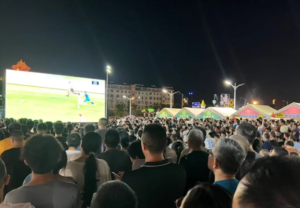 當晚,江陰市內眾多商場、景區、戶外廣場設置直播觀賽大屏和觀賽座位,打造集觀賽、美食、互動娛樂于一體的“蘇超”第二現場。