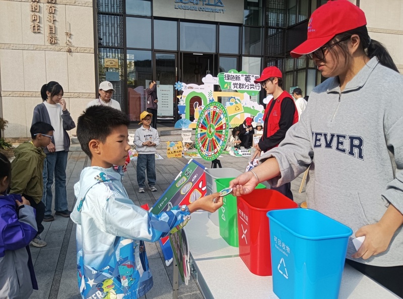 “5個(gè)塑料瓶換1枚環(huán)保幣,射中分類(lèi)靶位再得2枚,參與志愿行動(dòng)直接領(lǐng)5枚!”。近日,無(wú)錫市新吳區(qū)新安街道菱湖社區(qū)開(kāi)展的“綠色新‘菱’里 黨群分類(lèi)行”主題市集人氣十足,居民們手持通過(guò)“投遞換幣、游戲贏幣、志愿得幣”獲取的環(huán)保幣,或是在換購(gòu)閑置交易區(qū)的繪本玩具、特色文創(chuàng)等,亦或是兌換社區(qū)共建單位提供的公益培訓(xùn)課程。