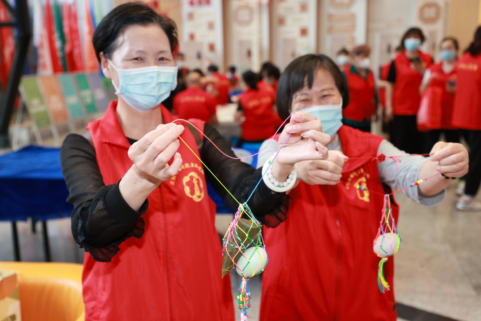 “很高興參加這次迎端午送溫暖活動(dòng),我們一大早就過(guò)來(lái)忙活,和其他志愿者一起包粽子、煮粽子、編織袋子……能和這么多志愿者一起在新時(shí)代文明實(shí)踐中心過(guò)端午,我覺(jué)得非常有意義。”志愿者邵芬英剛剛學(xué)會(huì)了編織裝粽子和鴨蛋的網(wǎng)袋,開(kāi)心地說(shuō)道。