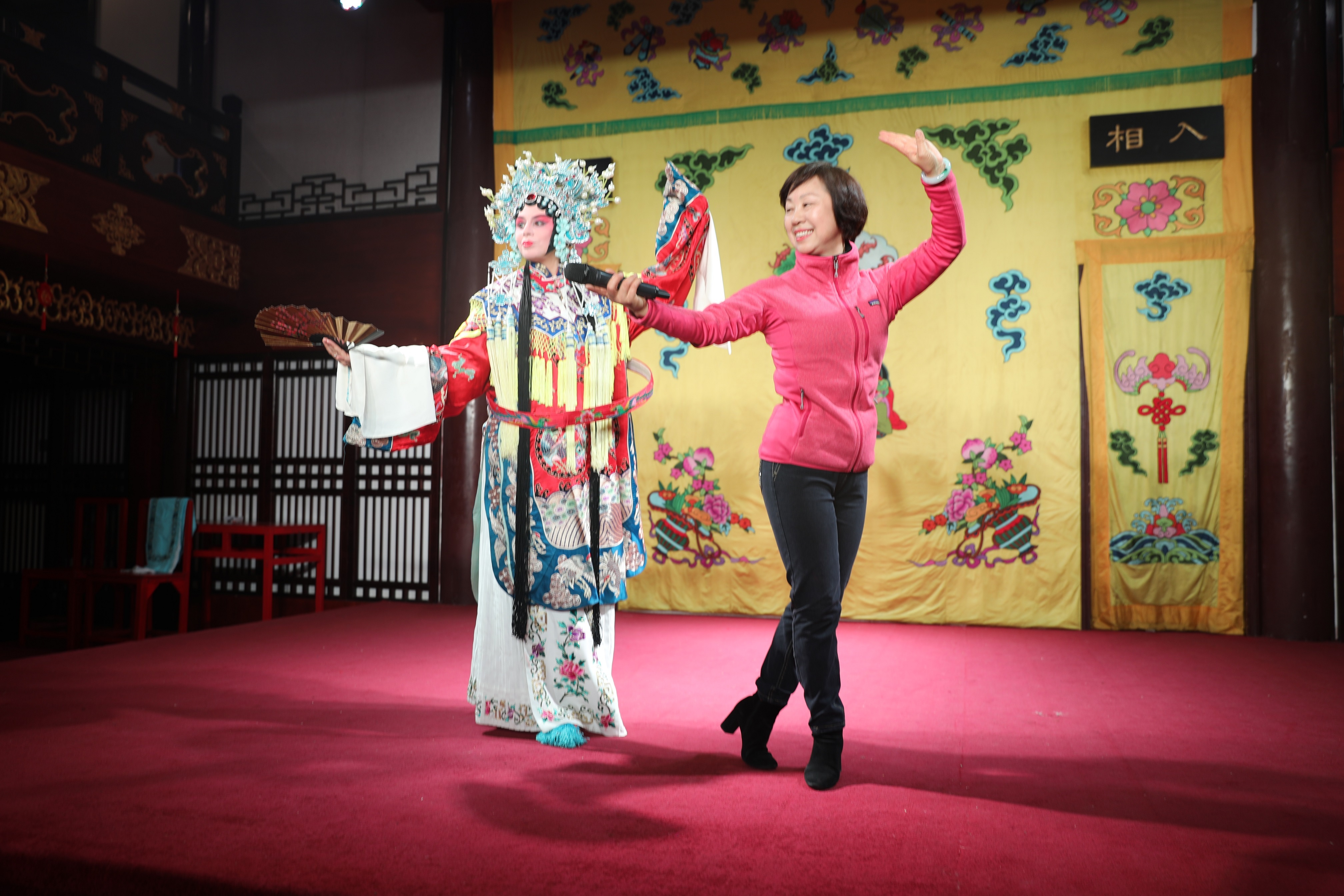 伶工學社負責人韋紅玉指導外國友人學京劇動作