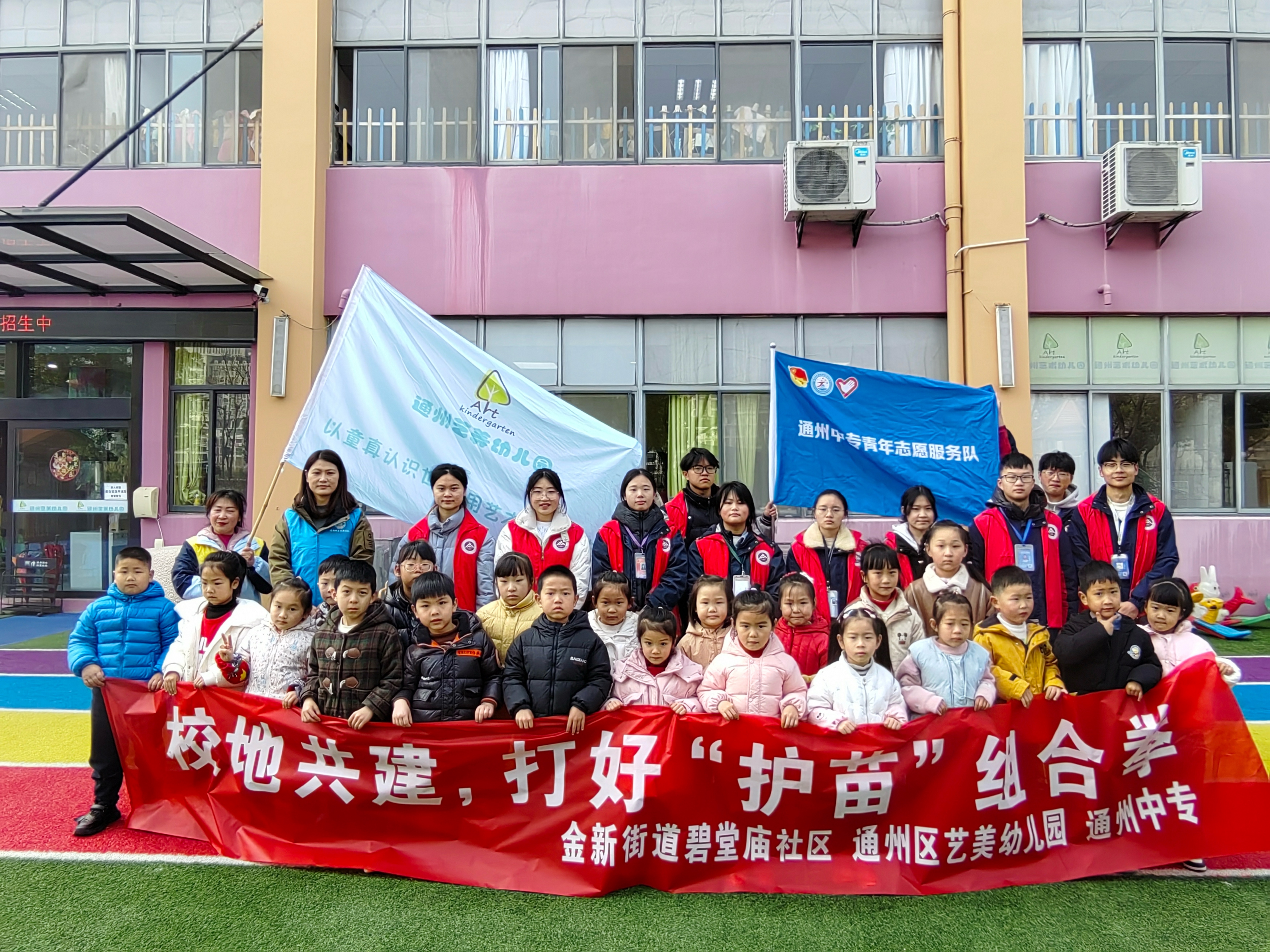 通州區充分調動資源,與多家文明單位共建,形成多方聯動的模式。轄區金新街道充分利用村居多、企業多、文明單位多等各類資源,以村居聯盟、校地共建、村居與單位共建等聯盟形式開展文明實踐活動,“聯盟化”成為匯聚區域單位資源與力量的重要載體。從個體志愿到群體聯動,從村居到市級文明單位,聯盟以志愿服務為紐帶,結合自身優勢與實際情況,從群眾需求出發,例如:金新街道碧堂廟社區與通州區藝美幼兒園、通州中專共建開展“護苗”活動;金新街道果園社區與通州萬達廣場開展閱讀活動等,互聯共促。