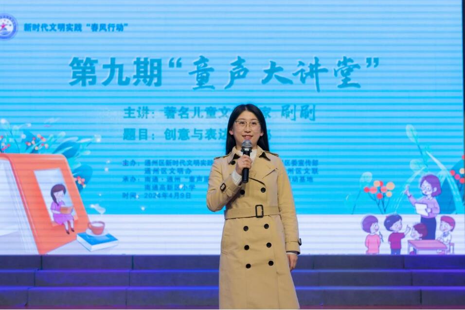 刷刷老師面向南通高新區小學五年級老師和同學們做了《創意與表達的奧秘》的專場講座。