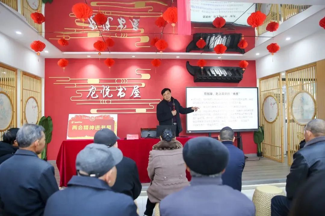 全國優秀黨務工作者、全國基層理論宣講先進個人姚呈明走進長江鎮鎮龍社區新時代文明實踐站,向黨員群眾解讀全國兩會政府工作報告。